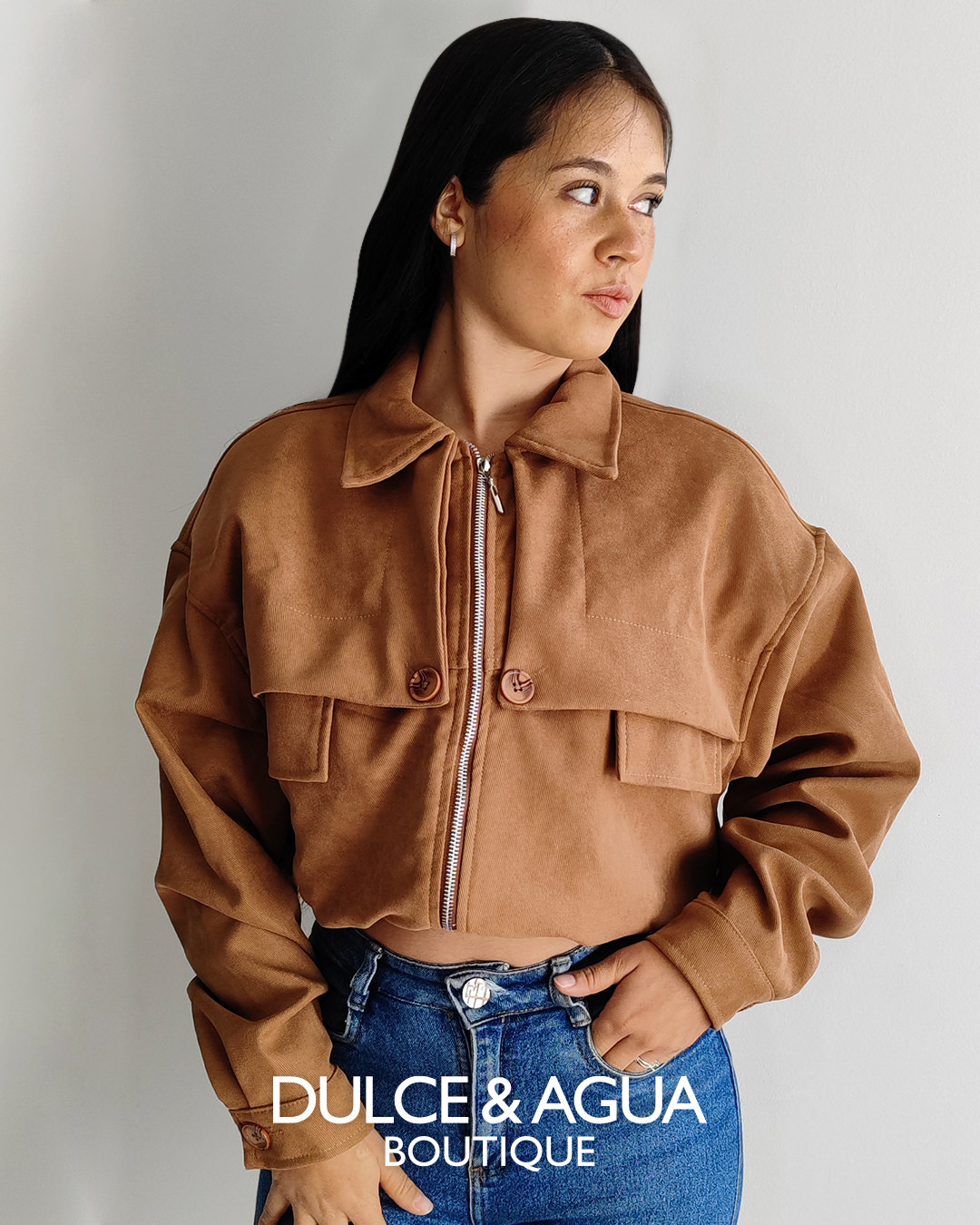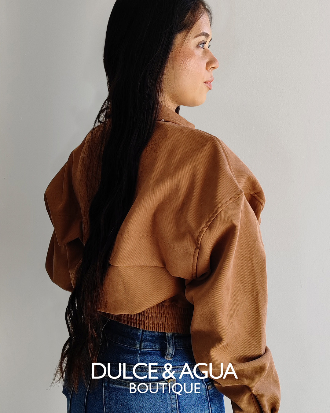 Chaqueta Dulce y Agua, tipo pana color tabaco